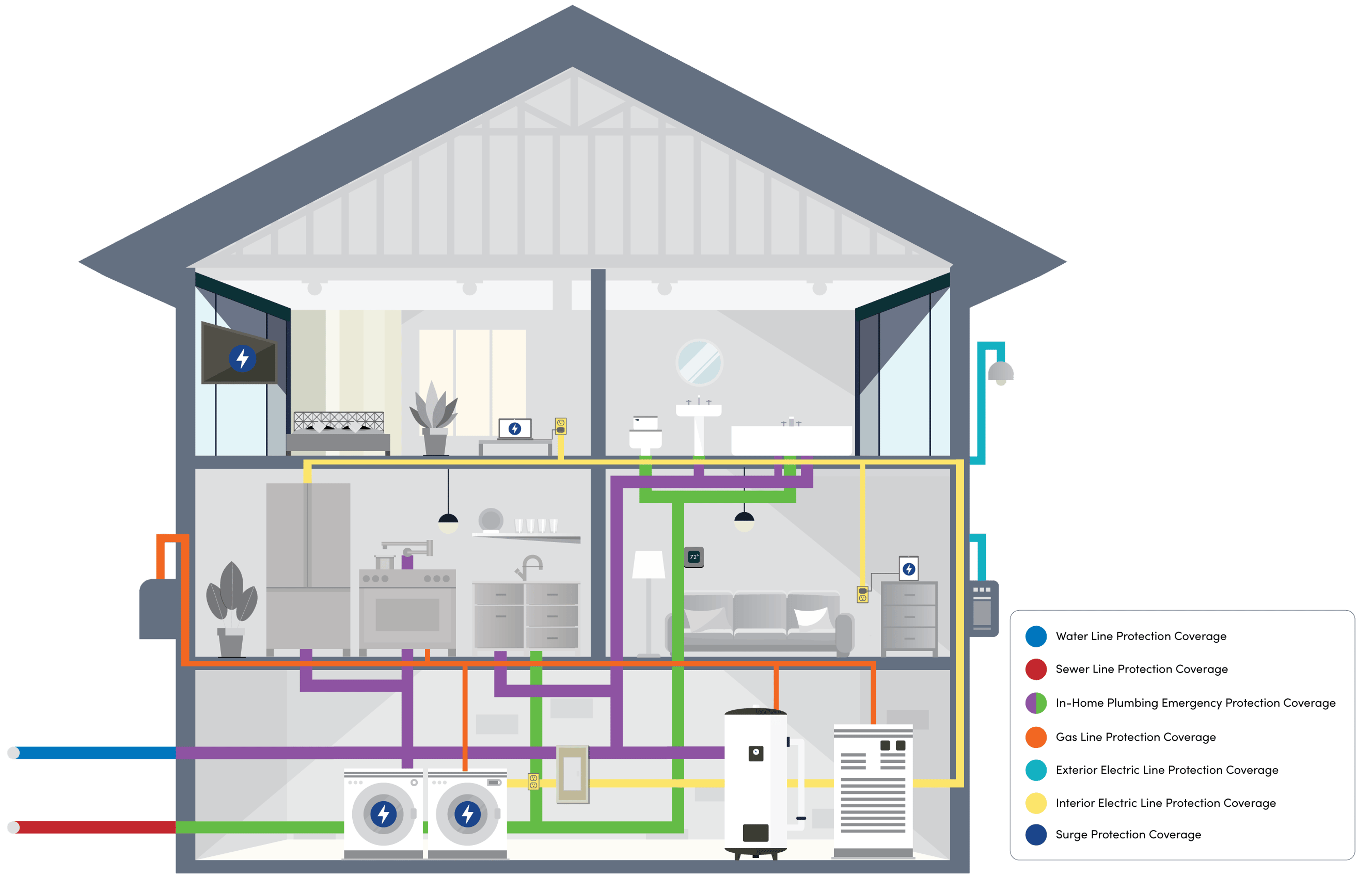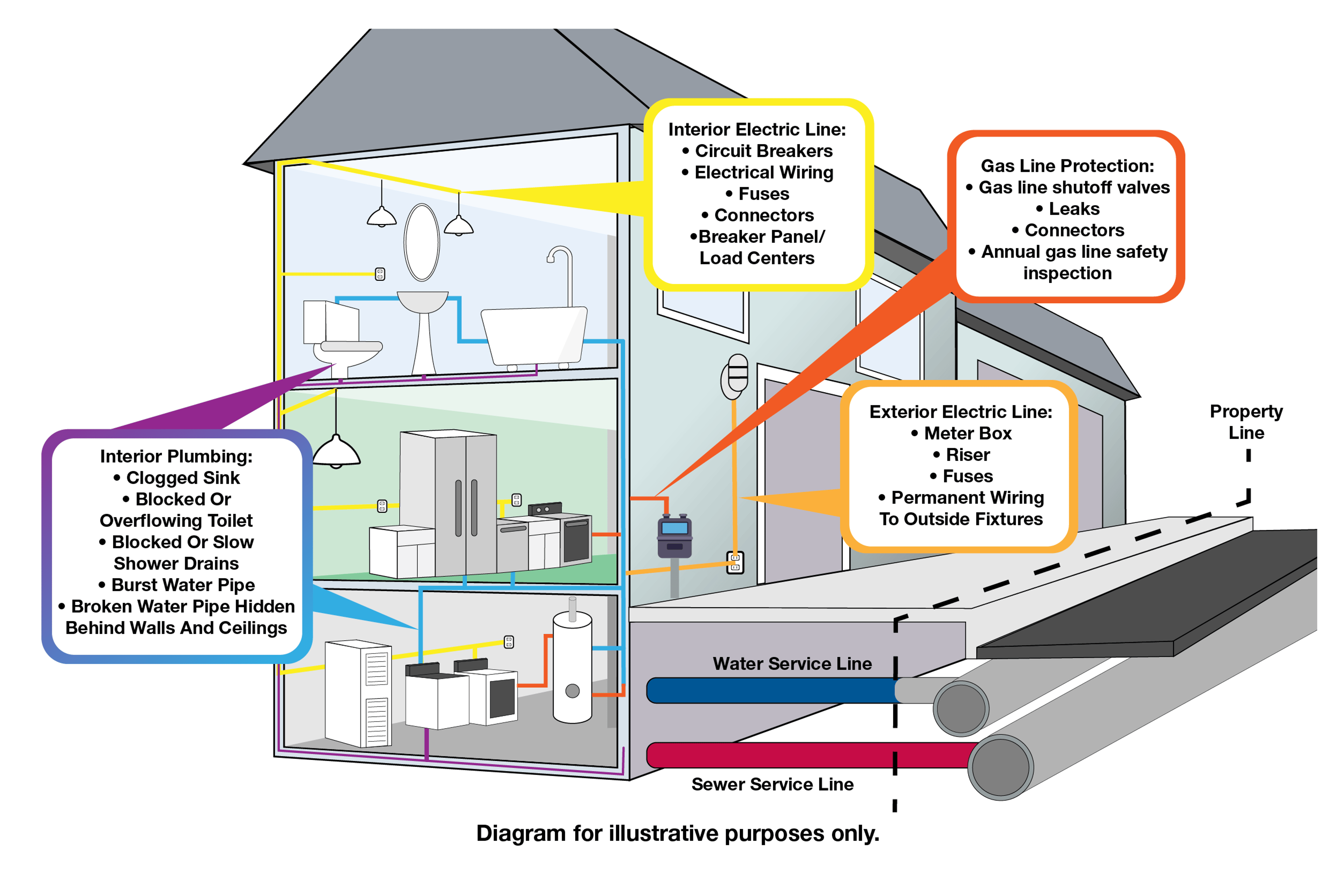 Utility line issues can be disruptive and lead to costly damage. From burst pipes and sewer backups to power outages and gas leaks, these problems require immediate attention that standard homeowners' insurance often doesn't cover. If a leak, breakage or fault occurs, you may be responsible.